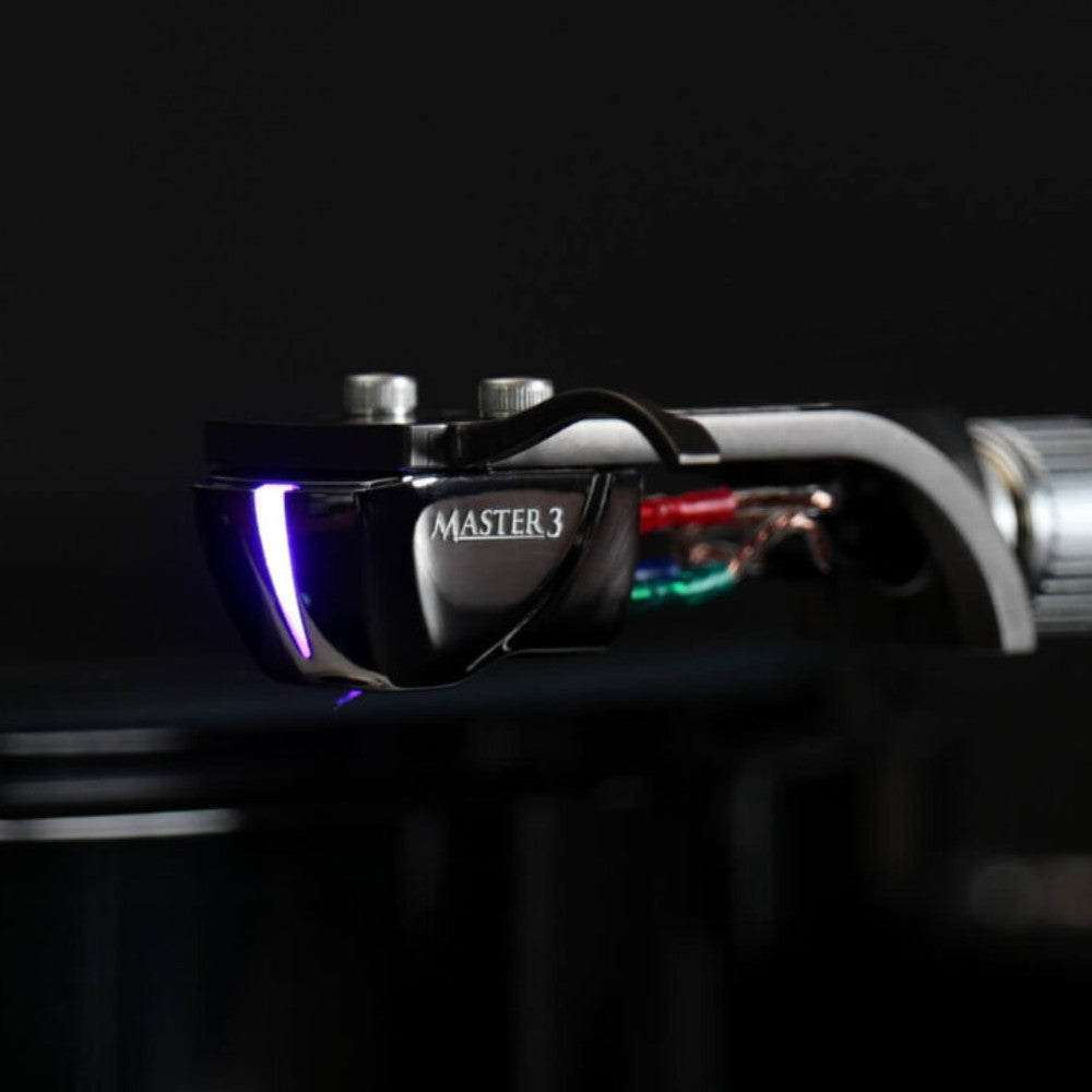 De Master3 cartridge, herkenbaar aan de paarse LED, is een primeur voor DS Audio en combineert een diamanten vierkante cantilever met een diamenten Micro Ridge gepolijste naald. De behuizing van de cartridge is zo ontworpen dat maximale stijfheid wordt gegarandeerd. Daarnaast maakt de Master3 gebruik van interne bedrading die 1,6 keer dikker is dan die van de tweede generatie cartridges om de impedantie te verlagen.